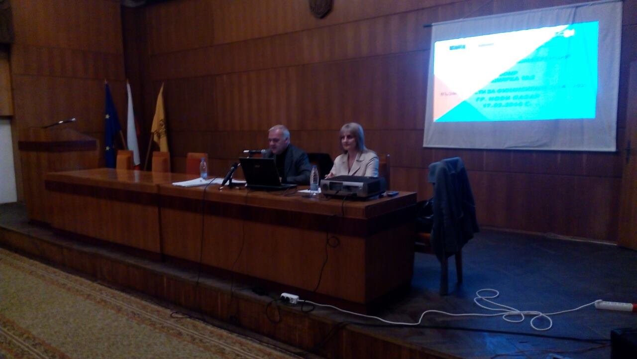 | МИГ НОВИ ПАЗАР-КАСПИЧАН ПРОВЕДЕ ИНФОРМАЦИОННА КОНФЕРЕНЦИЯ На 17 февруари 2016г., СНЦ „МИГ Нови пазар-Каспичан” проведе информационна конференция в град Нови пазар, свързана с прилагането на подхода Водено от общностите местно развитие /ВОМР/ и местното развитие, чрез прилагане на стратегия и изпълнение на проекти. Конференцията е дейност по Договор № РД 50-201/07.12.2015г. за предоставяне на безвъзмездна финансова помощ по подмярка 19.1 „Помощ за подготвителни дейности” на мярка 19 „ВОМР” от Програмата за развитие на селските райони за периода 2014–2020г., подкрепена от Европейския земеделски фонд за развитие на селските райони, сключен между СНЦ „МИГ Нови пазар-Каспичан”, МЗХ и ДФ „Земеделие” – РА.