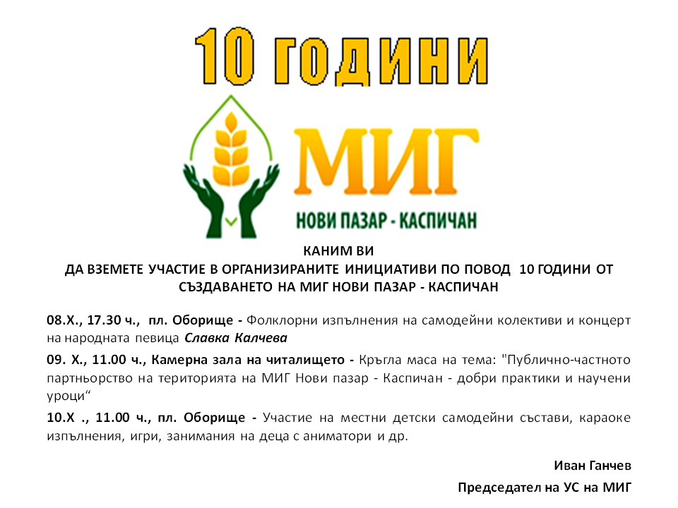 - ПОКАНА ЗА СВИКВАНЕ НА ОБЩО СЪБРАНИЕ НА СДРУЖЕНИЕ С НЕСТОПАНСКА ЦЕЛ „МЕСТНА ИНИЦИАТИВНА ГРУПА НОВИ ПАЗАР – КАСПИЧАН“